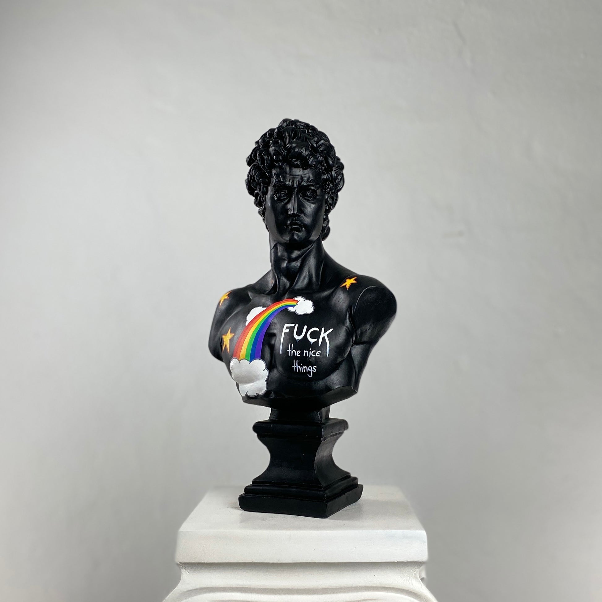 David 'F*** the Nice Things'™ is more than just a piece of art—it's an act of rebellion, a testament to the raw, untamed energy of expression. It challenges the polished and the perfect, daring you to question what "nice" even means.