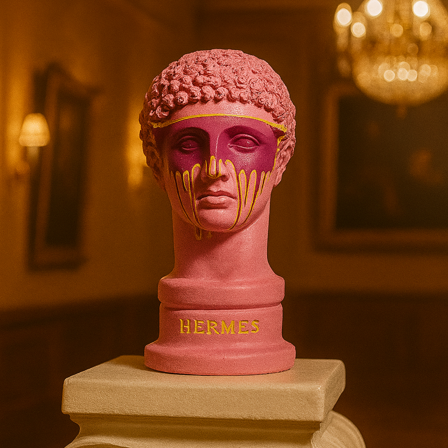The Hermes Drip™ sculpture transforms the Greek god of elegance and speed into a striking symbol of contemporary art.