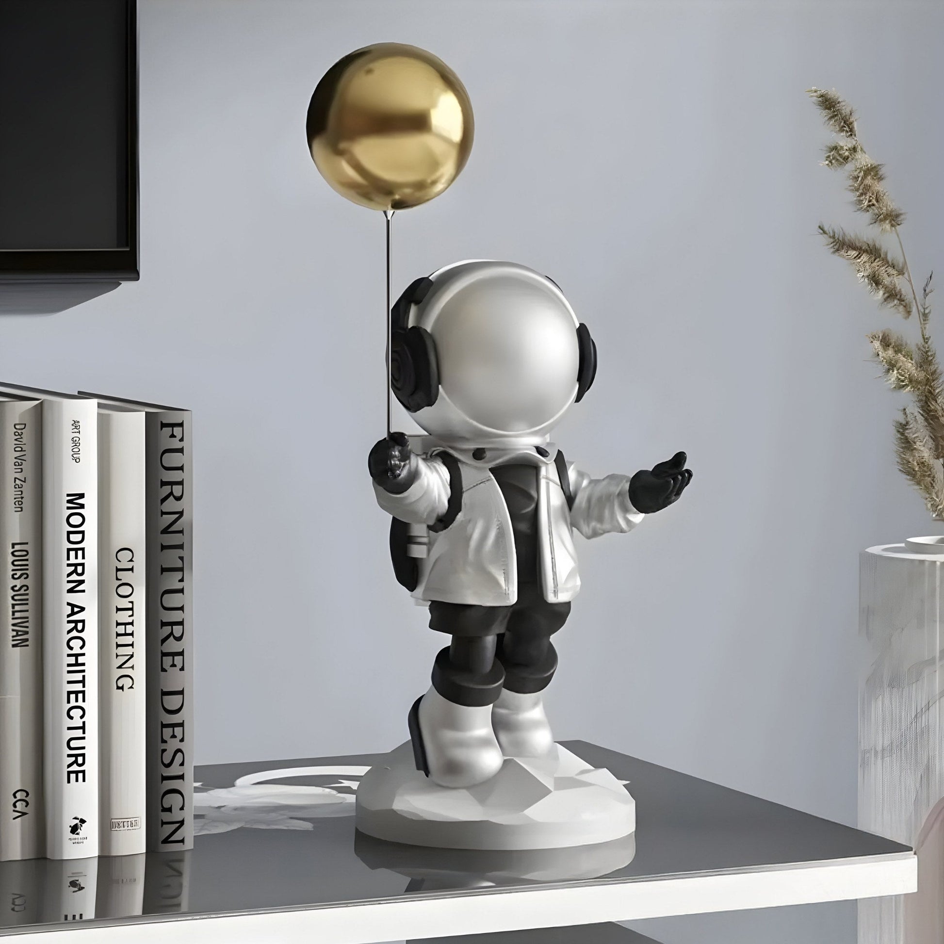 • Playful, Yet Refined: The combination of a childlike astronaut and a sleek modern finish creates a piece that is both fun and sophisticated, making it a versatile addition to contemporary lounges, offices, or creative studios.